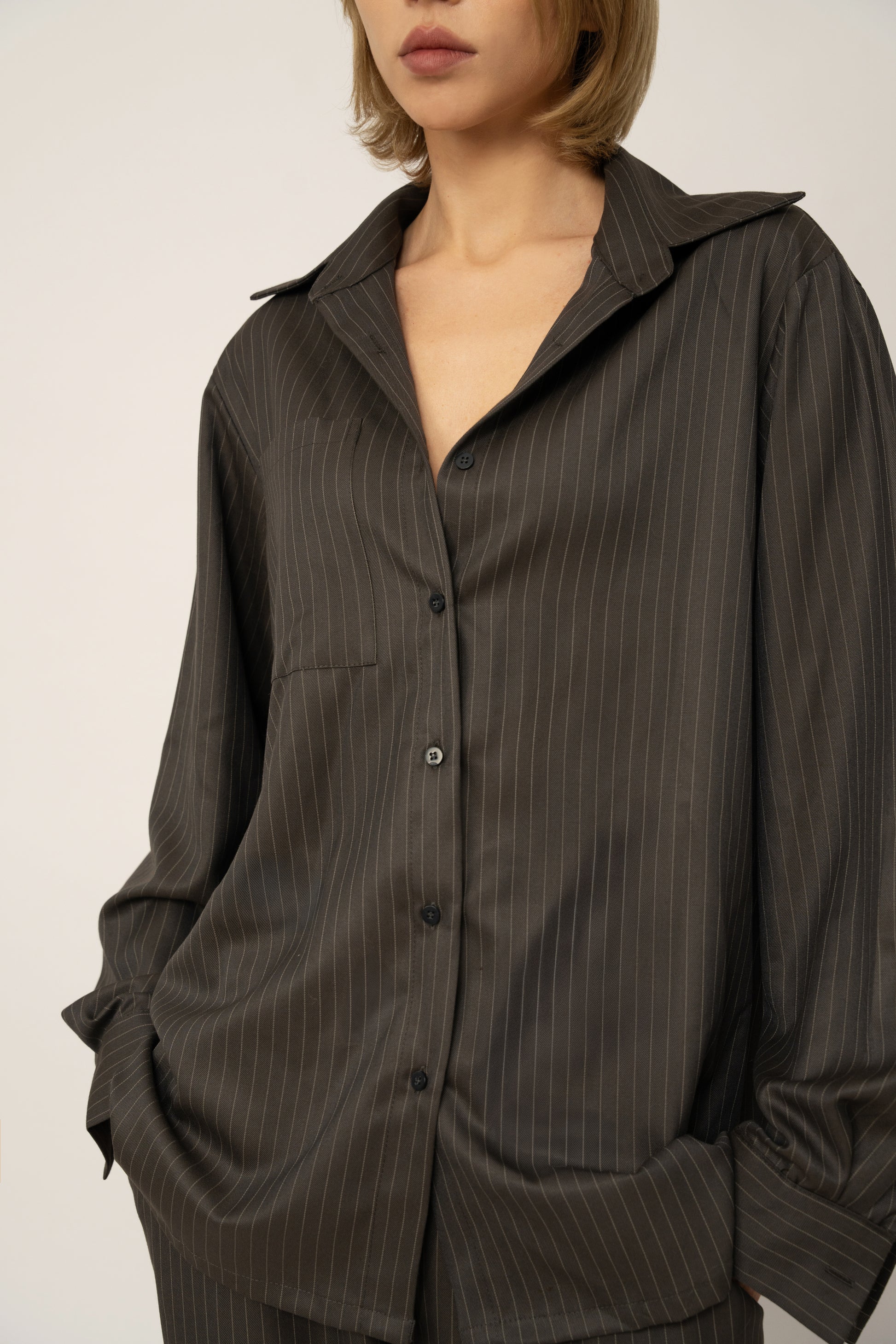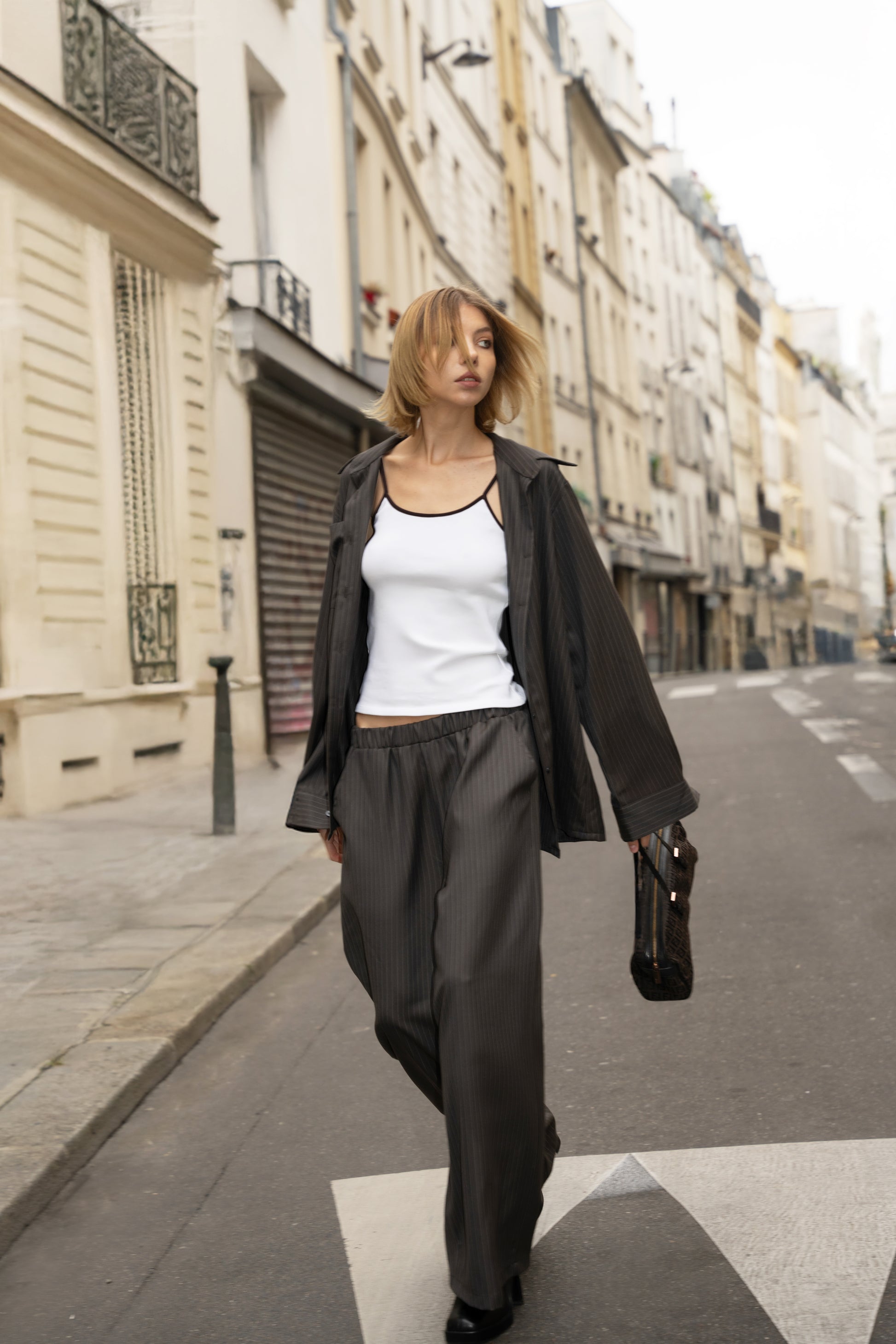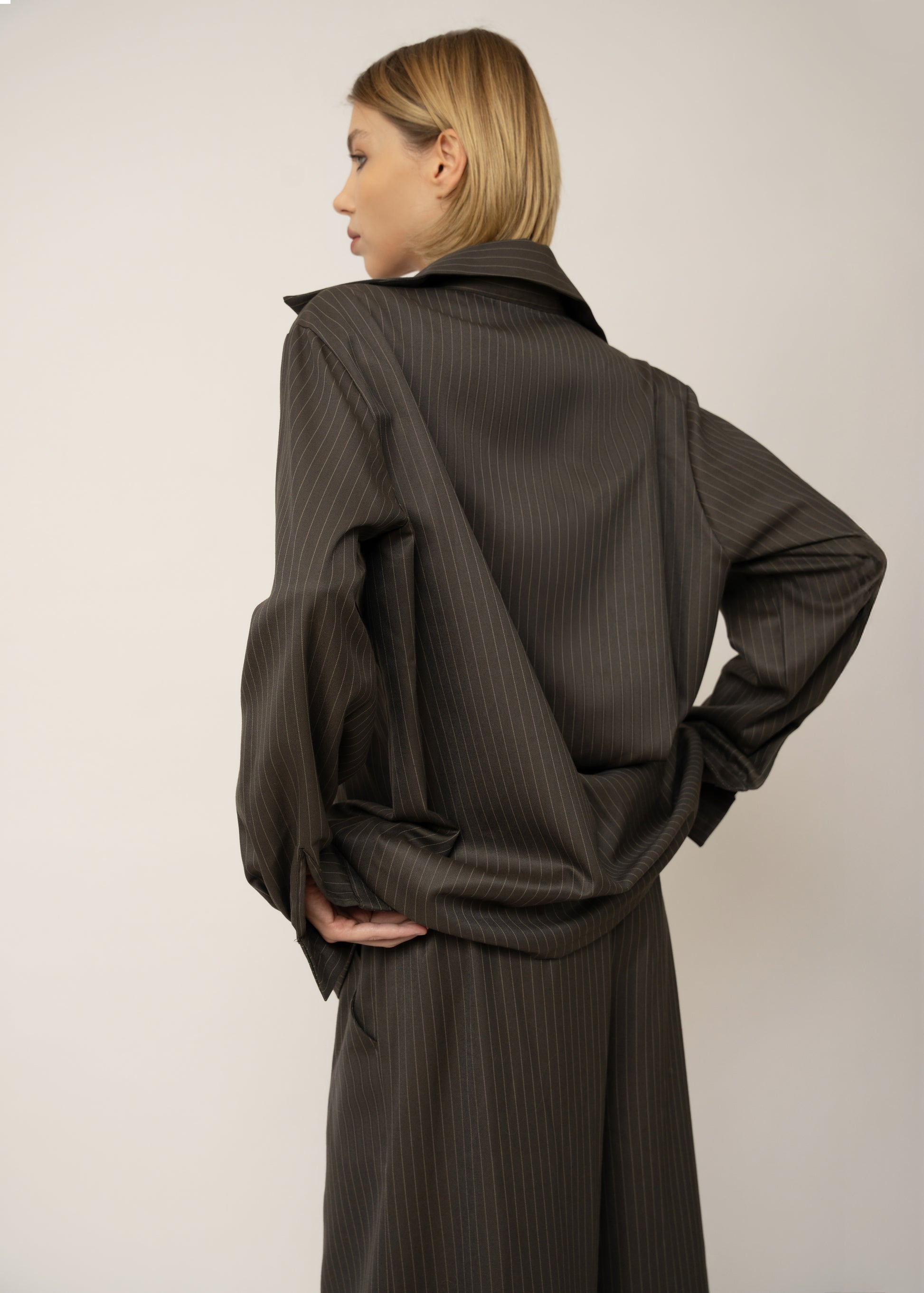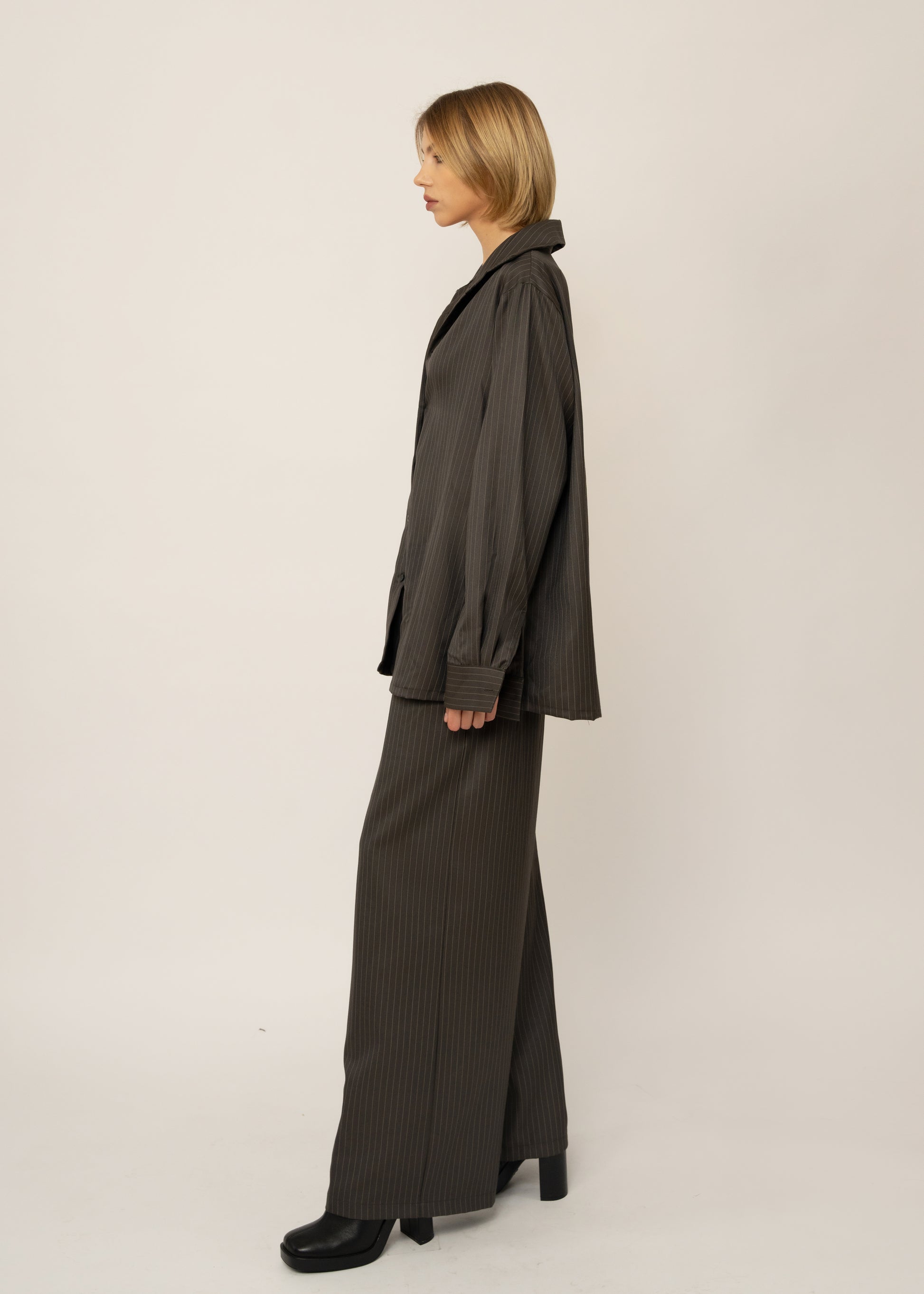 Features a loose-fit and wide-leg pants with an effortless drape. Made from lightweight fabric with subtle stripes for a refined yet laid-back look - perfect for everyday sophistication.